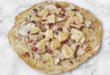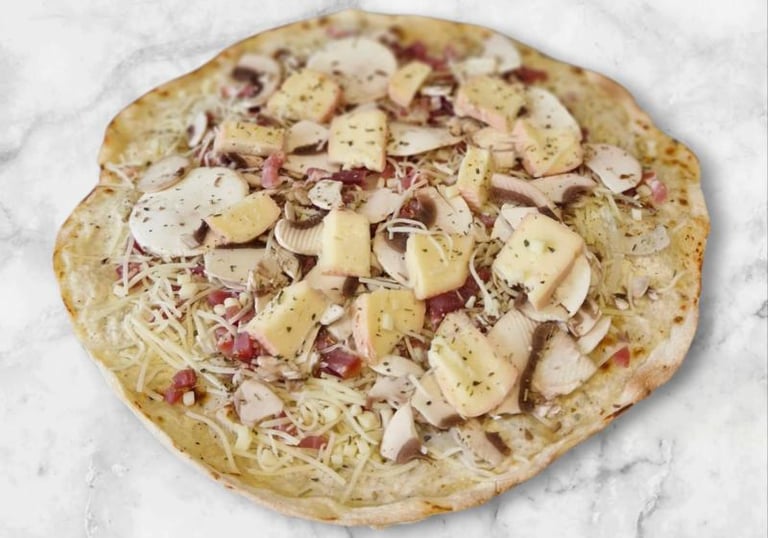 Une variante : La Tarte Flambée Forestière Gratinée au Munster