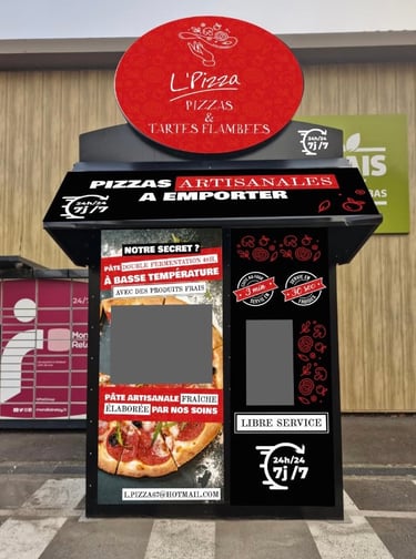 Découvrez L’Pizza, votre distributeur automatique de pizzas artisanales, disponible 24h/24 à Goxwiller, avec des ingrédients frais et de qualité.
